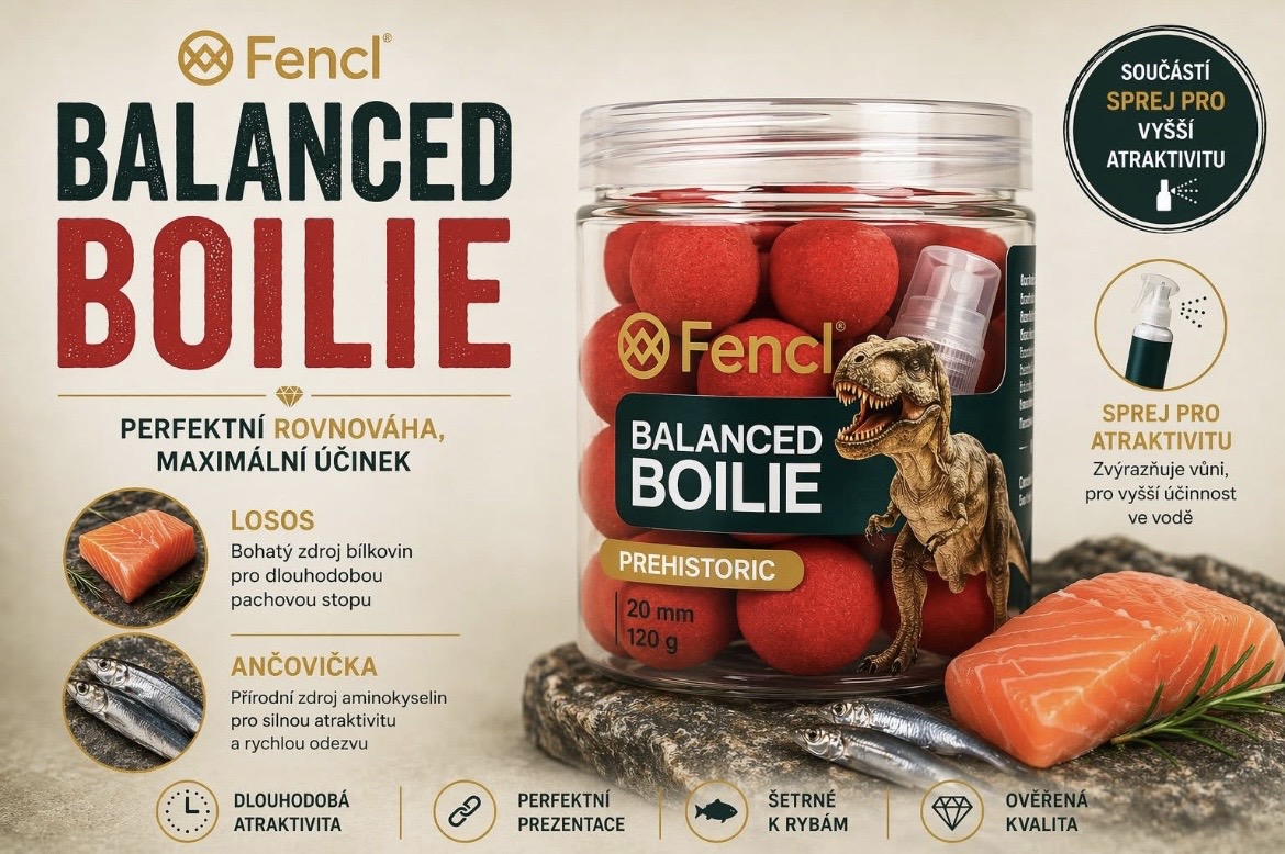 Fencl Prehistoric 20 mm to kulka zbalansowana typu balanced boilie o mocnym, rybnym profilu łosoś & anchois. Przynęta została stworzona z myślą o łowieniu dużych karpi w sposób selektywny i zdecydowany. Jej naturalna prezentacja nad dnem pomaga w skutecznym pobieraniu przez ryby, a intensywny aromat tworzy wyraźny ślad zapachowy w wodzie. 20 mm to rozmiar, który dobrze ogranicza drobnicę i sprzyja nastawieniu na większe sztuki. W komplecie znajduje się spray aromatyczny, dzięki któremu można dodatkowo zwiększyć atrakcyjność przynęty. To wariant dla karpiarzy, którzy preferują wyraziste, rybne i mocno pracujące profile.