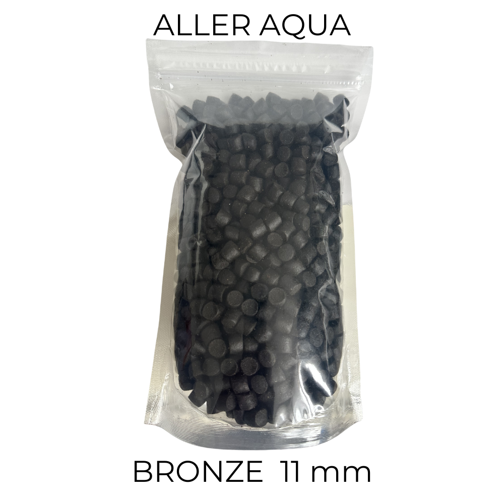 Aller Aqua Bronze 11 mm to pellet przeznaczony do selektywnego nęcenia i łowienia większych ryb. Duża średnica sprawia, że pellet pracuje wolniej i bardziej stabilnie, co pozwala budować trwałe pole żerowe.